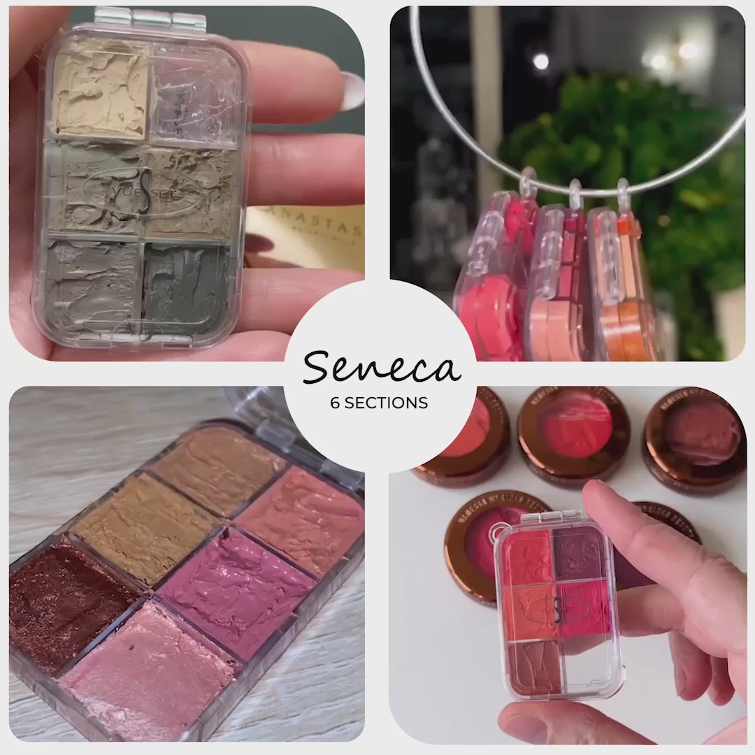 Seneca pallettan er með sex hólf og er þekkt fyrir loftþétta hönnun sína, sem gerir hana að fullkominni lausn til að bera úrval af snyrtivörum á þægilegan máta.